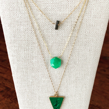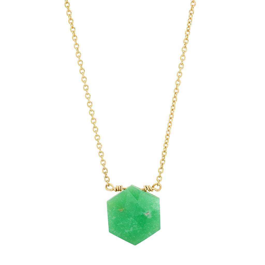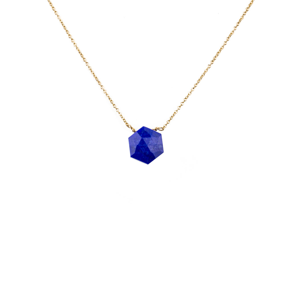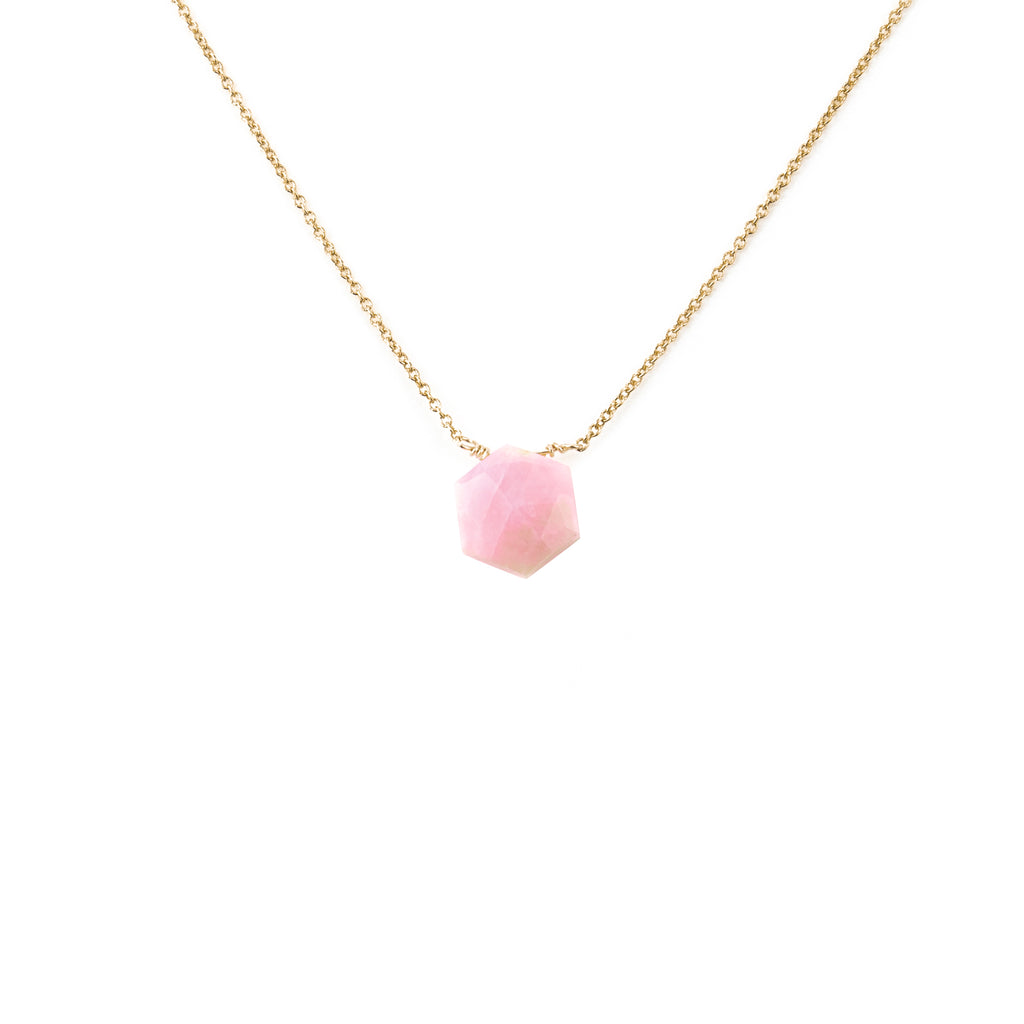 Here we have our best-selling hexagon dainty necklace. Similar to the original dainty necklace in its size and versatility, here we give a unique shape. Choose from your favorite gemstones~ chrysoprase, lapis, pink opal & moonstone; there is something for every gem lover! This piece becomes like a second skin, many of our clients forget to take it off!